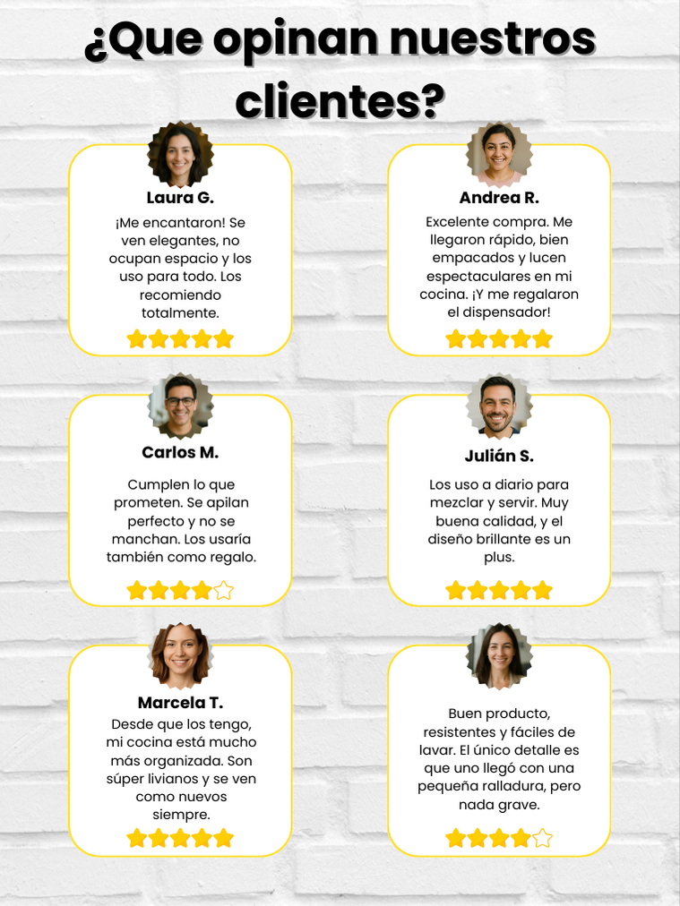 Son multifuncionales: mezclar, servir, marinar, guardar frutas, preparar ensaladas, batir, organizar, e incluso para picnics o reuniones.
